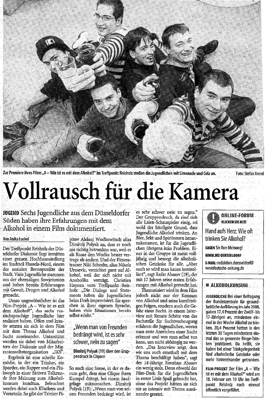 "Vollrausch für die Kamera" Westdeutsche Zeitung, 13. Februar 2009 |